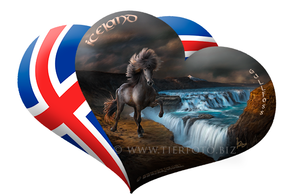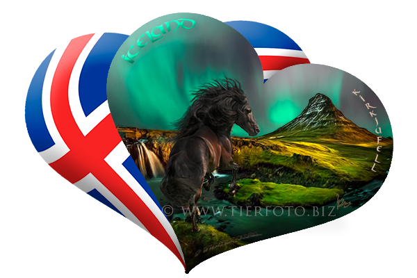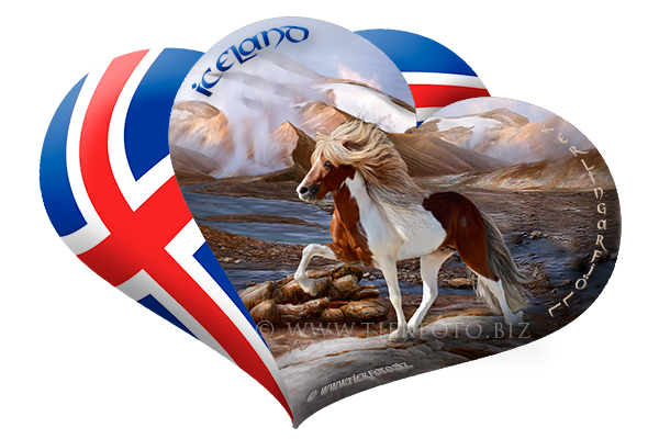 The beauty of Icelandic horses and breathtaking natural wonders of Iceland fused in unique photorealistic motifs of digital paintings.